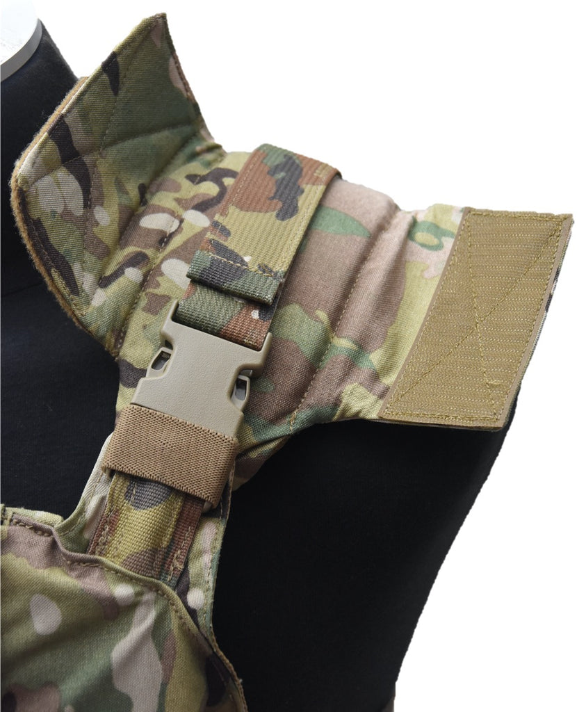 The Advanced Plate Carrier Releasable G3 (APCRG3) from High Ground is a fully adjustable, laser cut and modular tactical plate carrier system with cummerbund also incorporating our Quad Release buckle/cable system. Starting with its fully adjustable shoulders which allows any end user to configure it his/her neck and shoulder shape. The removable/replaceable shoulder pads allow the insertion of the optional soft armor pieces (not included). The APCRG3 includes a fully sewn in drag strap with Velcro attachment to be tucked away when not in use. The APCRG3 features two separate front and rear soft armor and hard armor pockets which also house High Ground’s Single Pull Plate Ejection System allowing the end users to drop their plates without losing their kit or soft armor. The single pull releasable system utilizes a 4- point buckle system connected at the shoulders for the upper part of the vest and underneath the cummerbund in the front of the carrier for donning and doffing when not releasing.